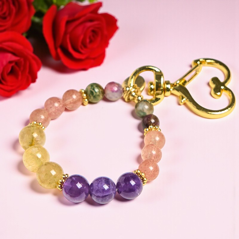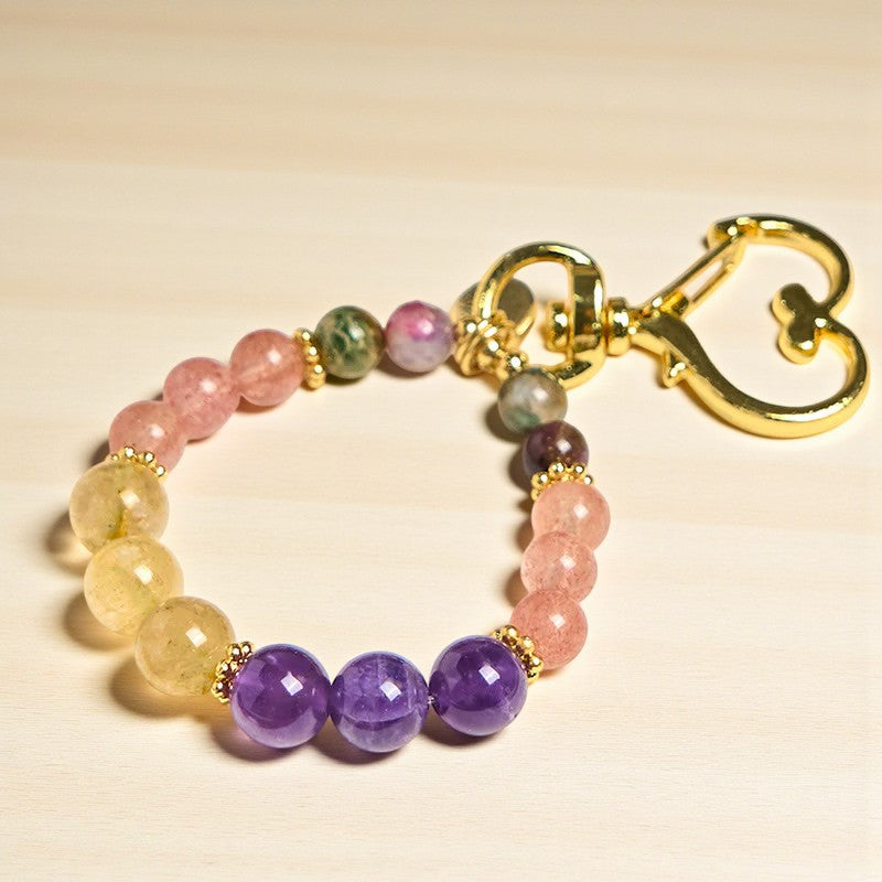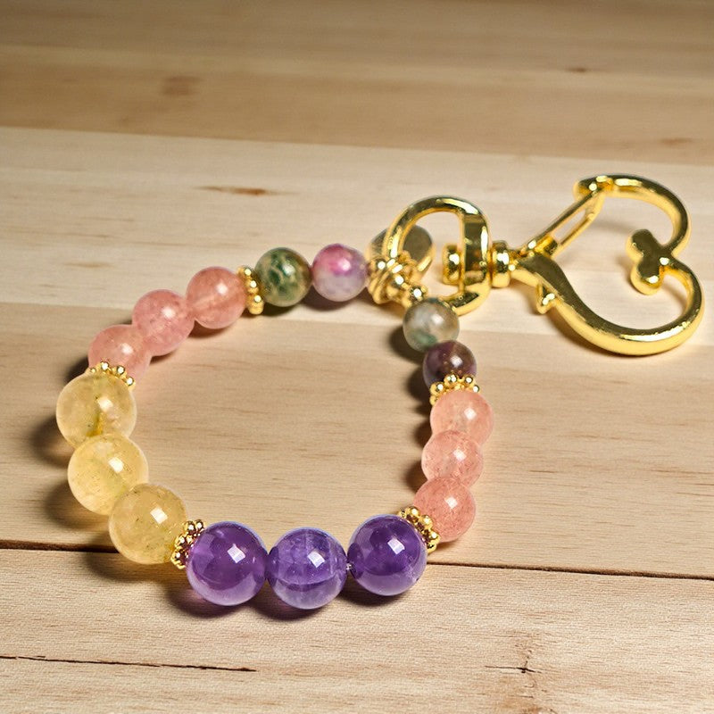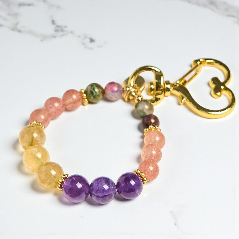 Handmade Strawberry Quartz Amethyst Citrine Beads Love Key Chain Hanging Ornament