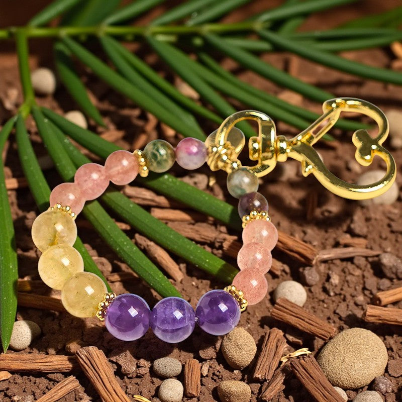 Material: Strawberry Quartz, Amethyst, Citrine, Copper, Alloy