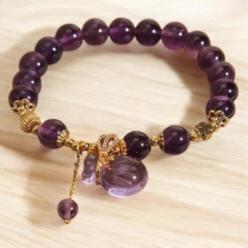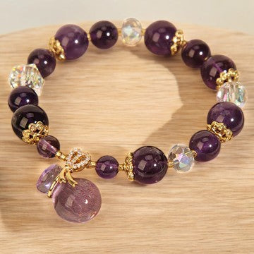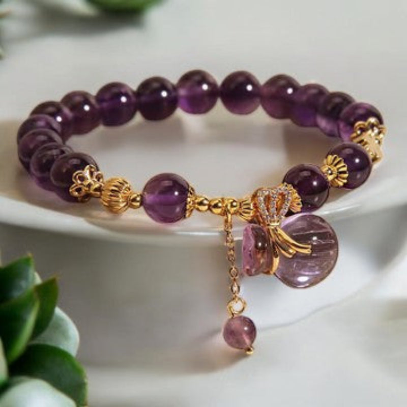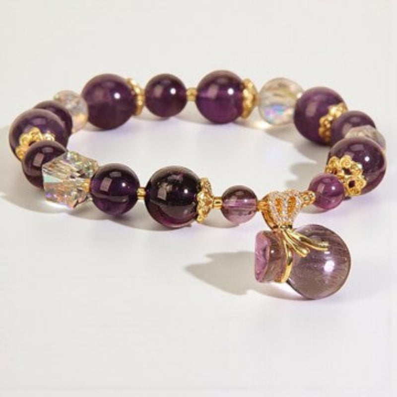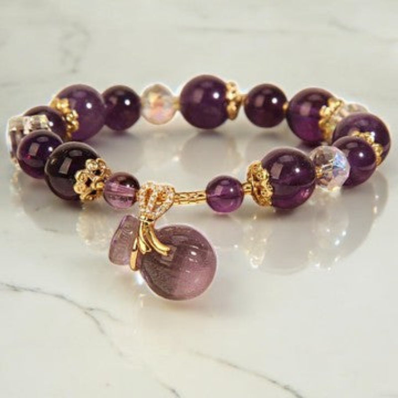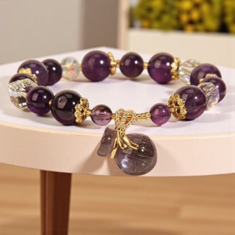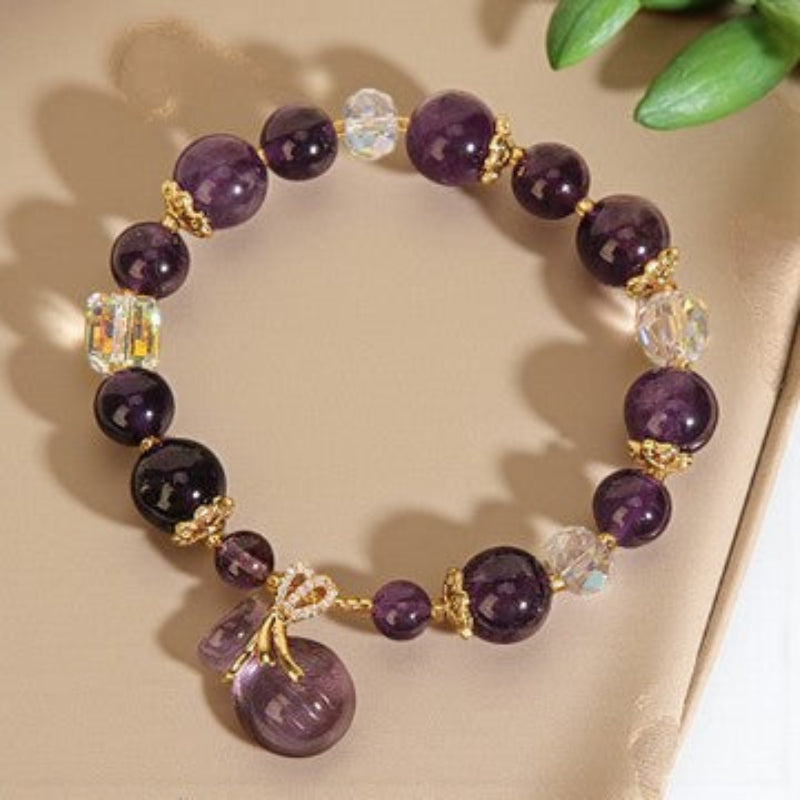 Positive Charm Bracelet with Natural Amethyst Crystal Money Bag