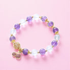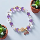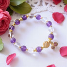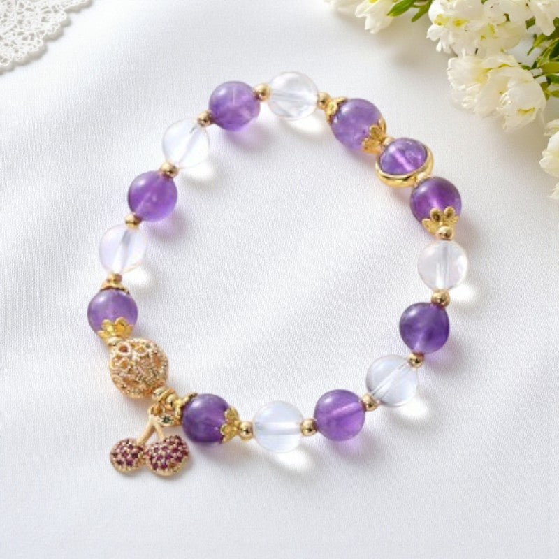 Natural Amethyst and White Crystal Bracelet with Positive Cherry Charm