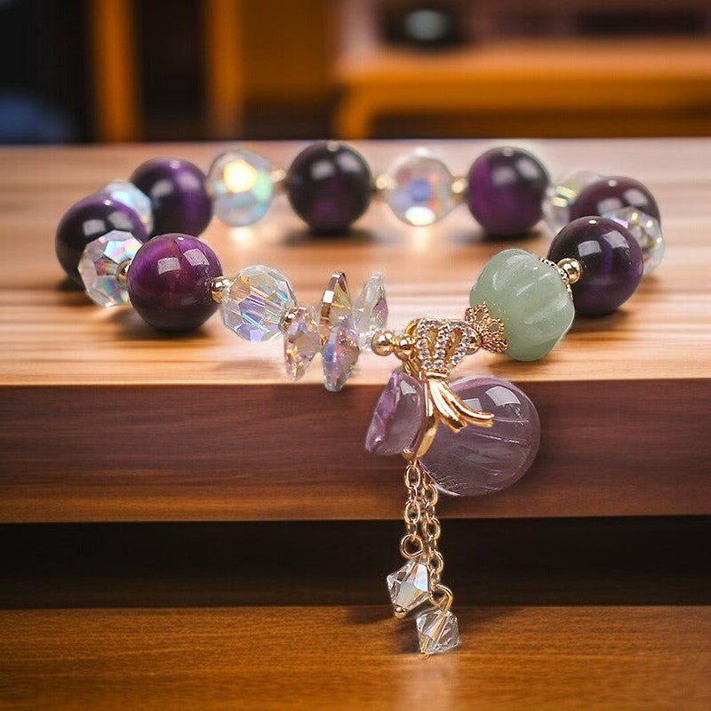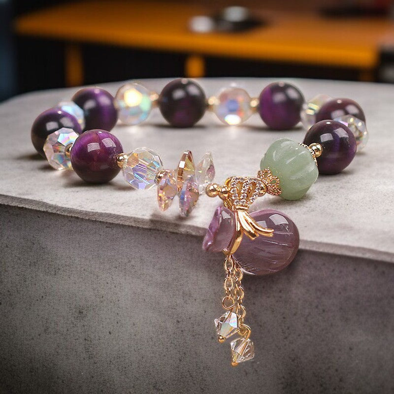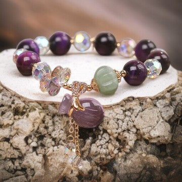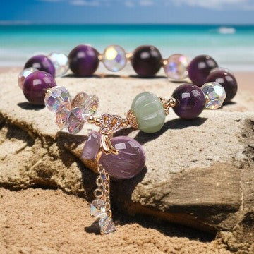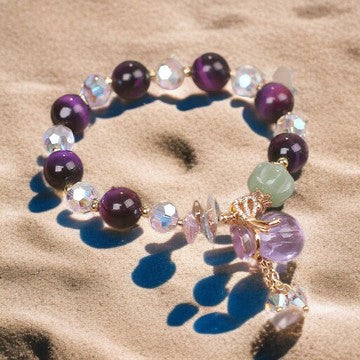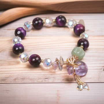 Material: Purple Tiger Eye, White Crystal, Amethyst, Jade, Alloy