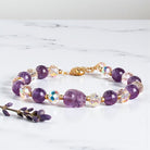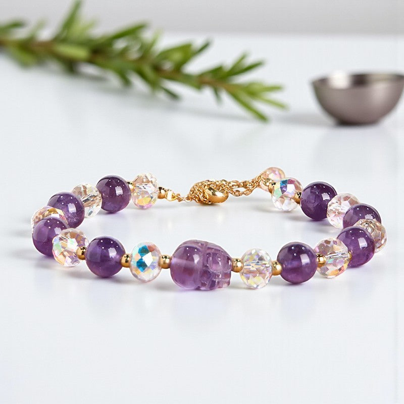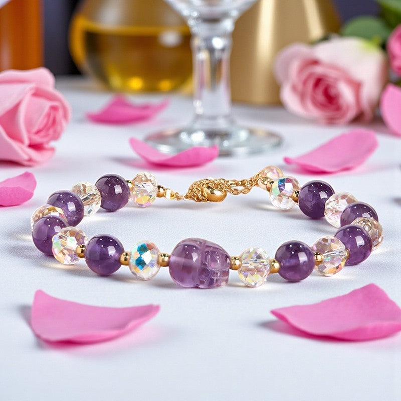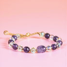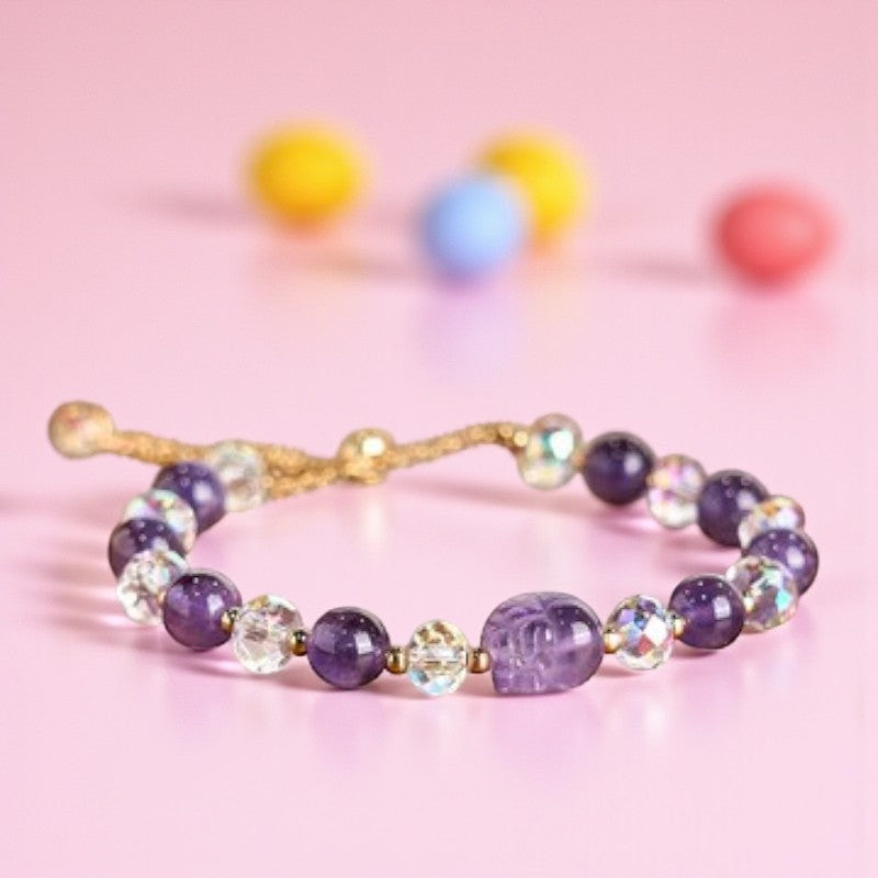 Amethyst Pixiu Bracelet presents a harmonious fusion of alternating Amethyst and Artificial Crystal beads, culminating in a captivating Pixiu centerpiece that exudes spiritual significance. Revered for its calming and balancing attributes, Amethyst intertwines with the auspicious Pixiu symbol, renowned for ushering in fortune and protection. This bracelet is meticulously crafted to harmonize emotions, while the dynamic blend of crystals nurtures tranquility, spiritual evolution, and a radiant aura of positive energy. 💕