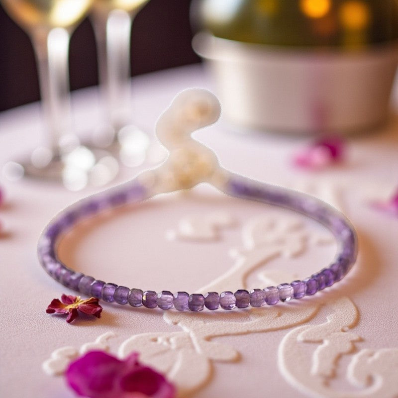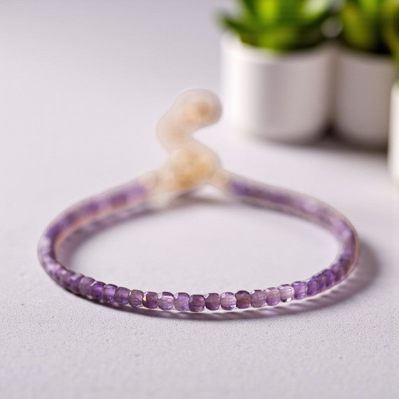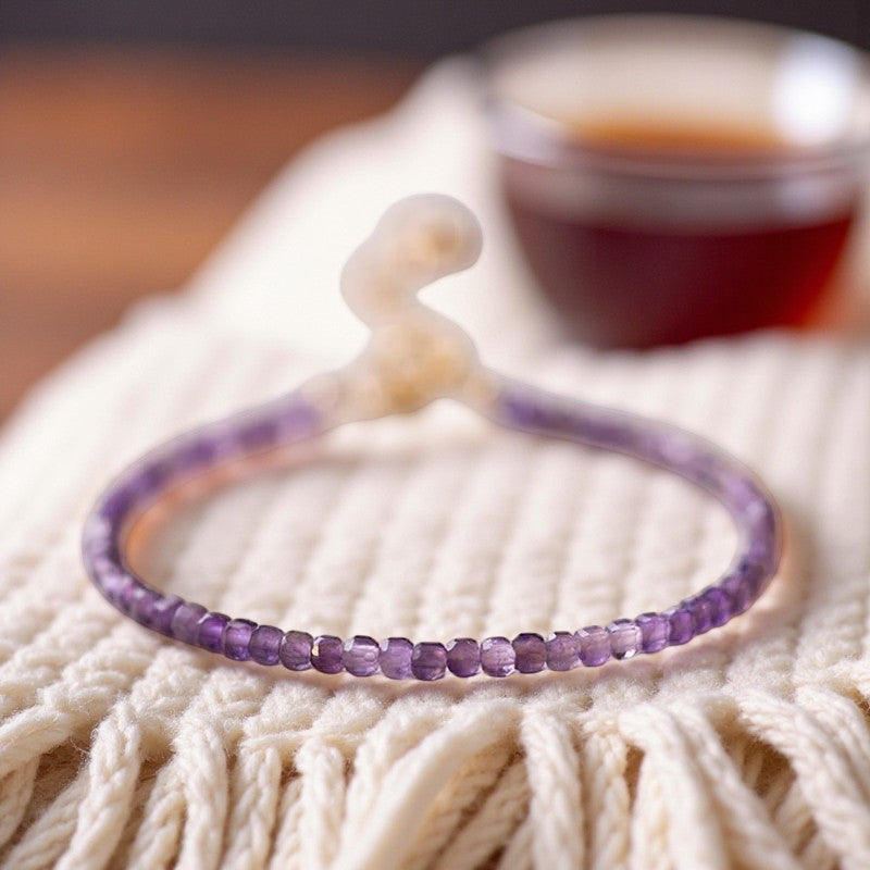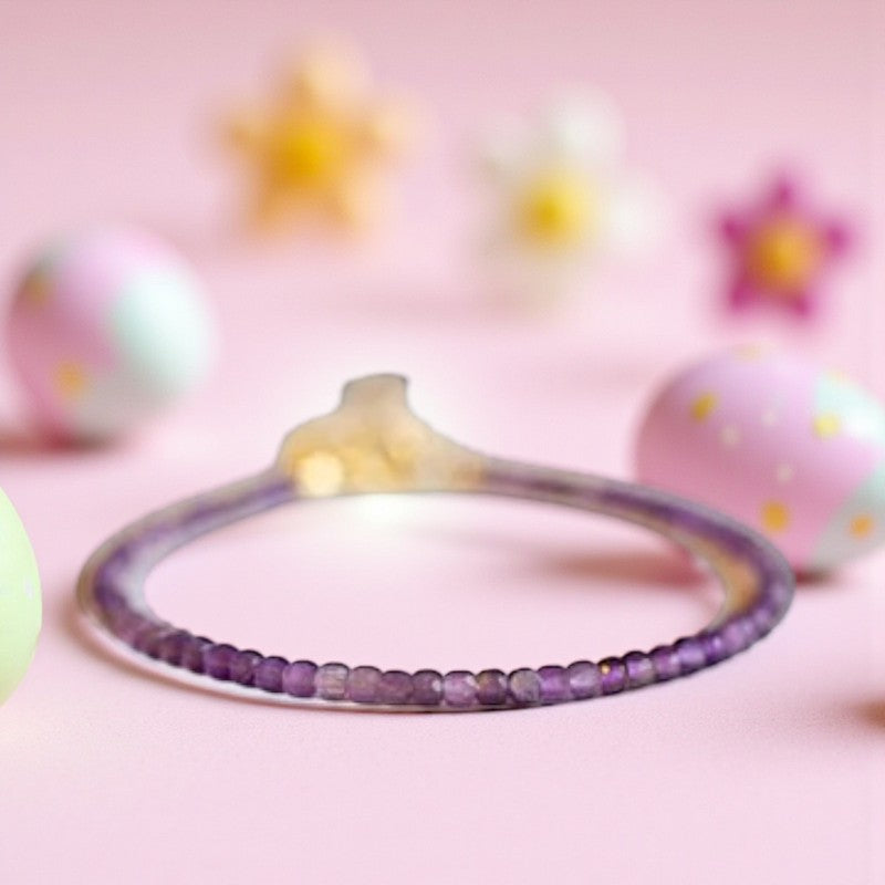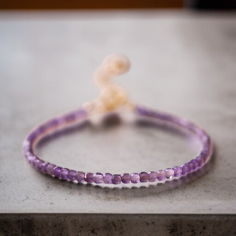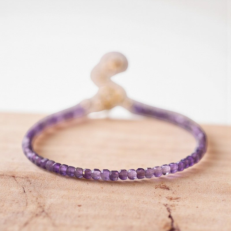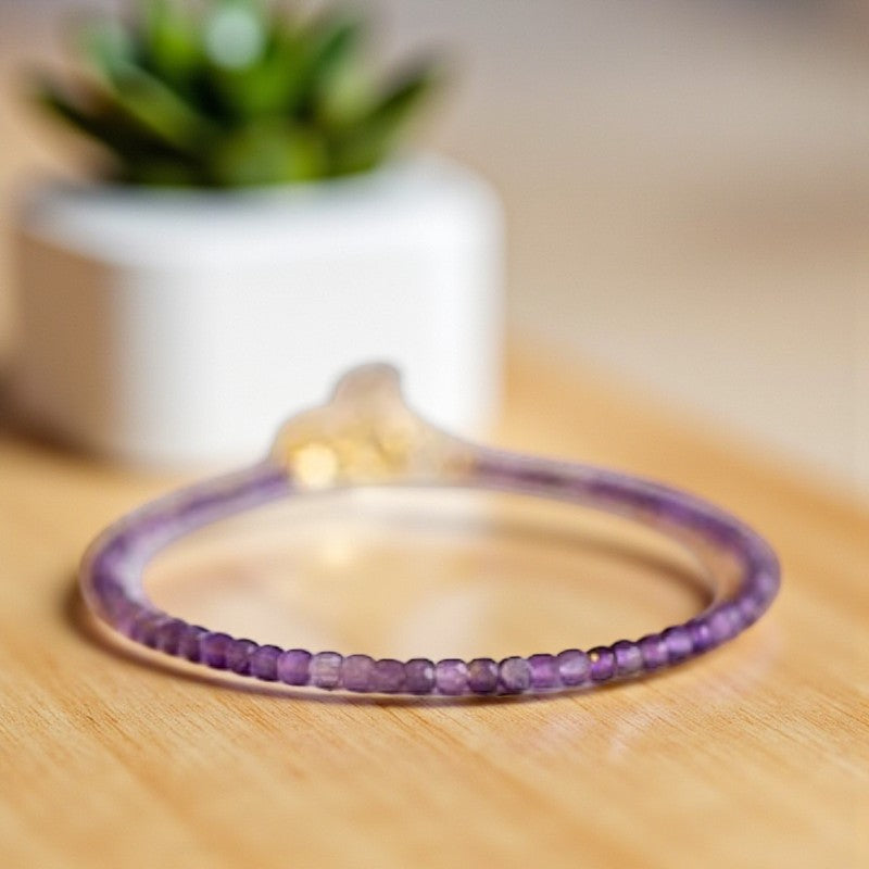 Natural Amethyst Ultra-fine Beads 14k Gold Plated Copper Inner Peace Bracelet