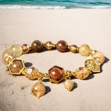 Material: Rutilated Quartz, Artificial Crystal, Copper plated with 18k gold