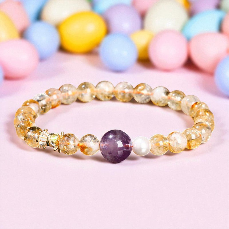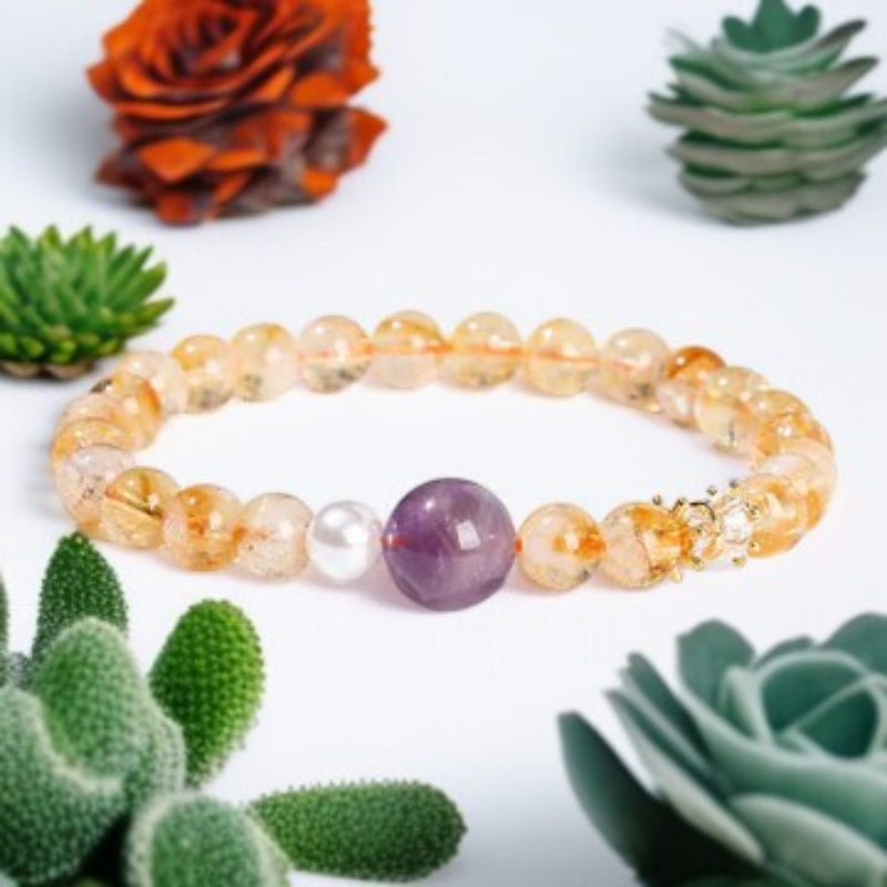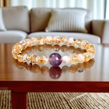 Experience the synergistic power of Amethyst and Citrine in our Harmony Bracelet. Amethyst, a symbol of peace and spiritual clarity, combines effortlessly with Citrine, known for its ability to attract prosperity and positivity.