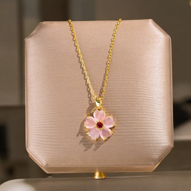 Attract Love: Rose Quartz Hibiscus Flower Pendant