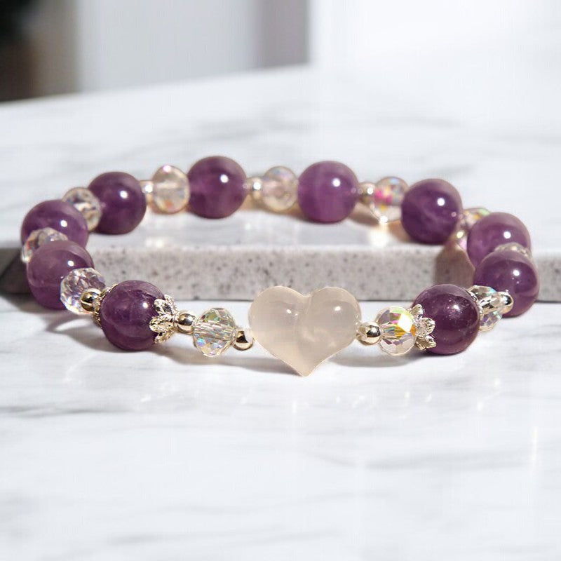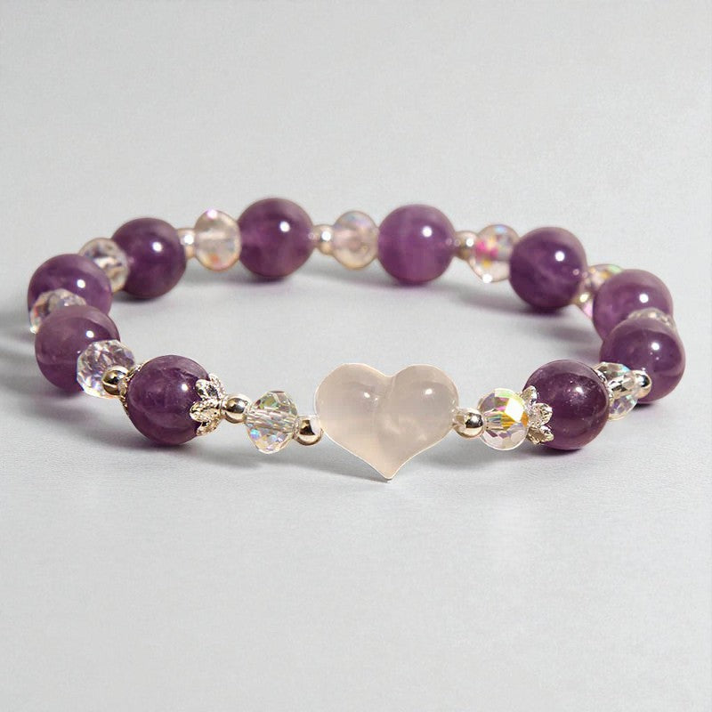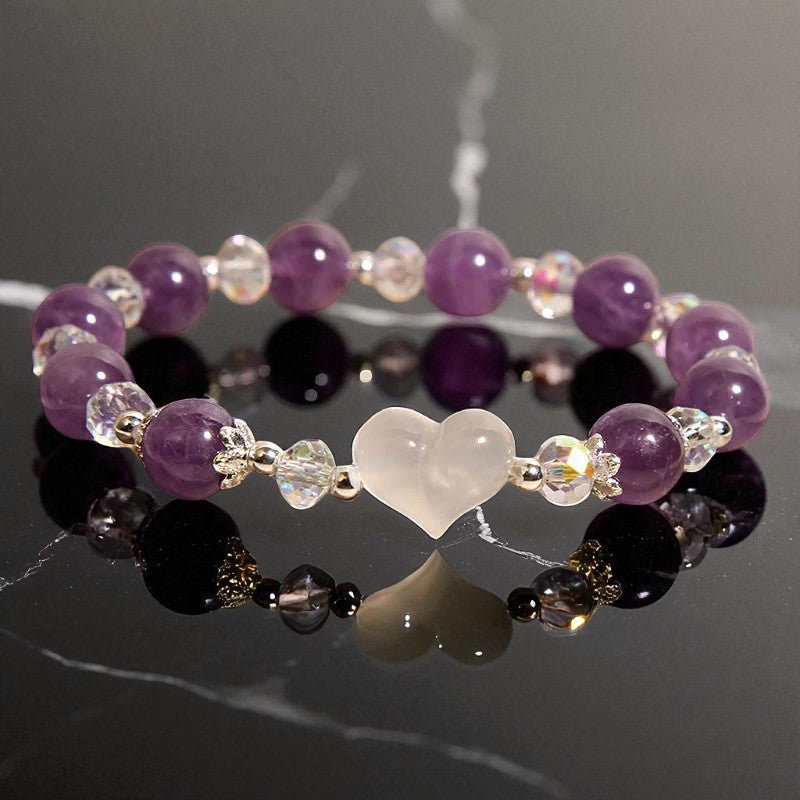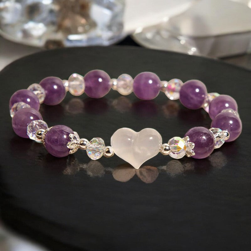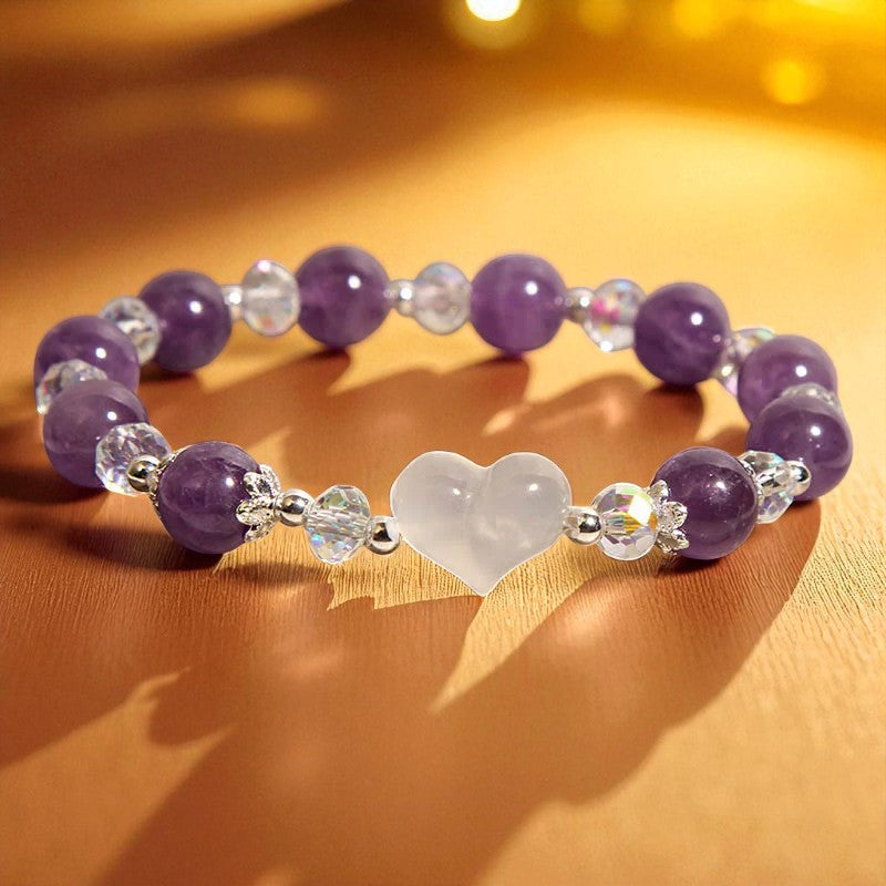 Heart Balance Bracelet: Amethyst and White Agate Harmony Design