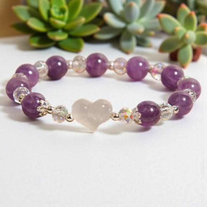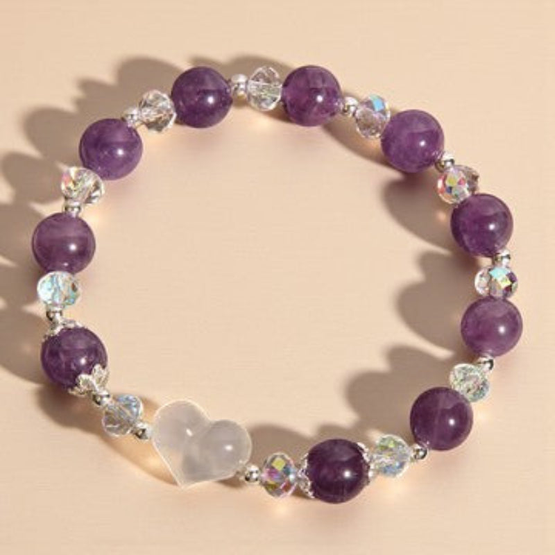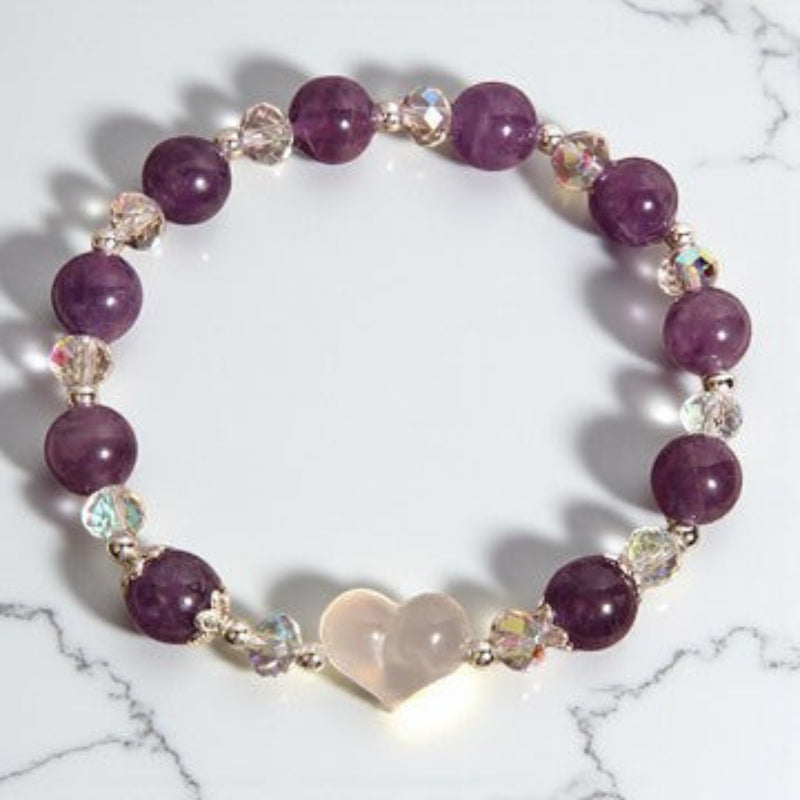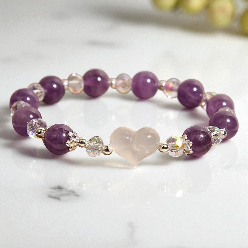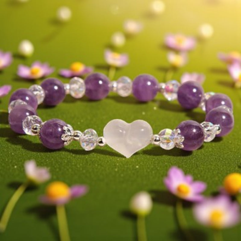Heart Balance Bracelet: Amethyst and White Agate Harmony Design