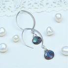 The graceful arcs of silver framing these earrings are crafted with a fluid curvature, introducing an organic and dynamic element to the overall aesthetic. More than mere structures, these frames echo the fluid and transformative essence of labradorite, enhancing the sense of motion and weightlessness in each piece. The sterling silver enveloping the labradorite stones serves a dual purpose—it is both functional and symbolic. Silver, often associated with lunar energies and intuition, amplifies the spiritual attributes of labradorite, fostering a deeper connection to one's inner self.