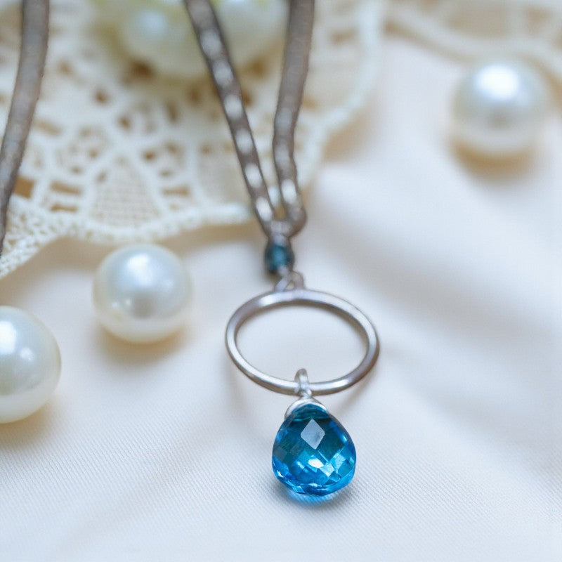 Embrace Your Essence: Azure Topaz Teardrop Sterling Silver Necklace