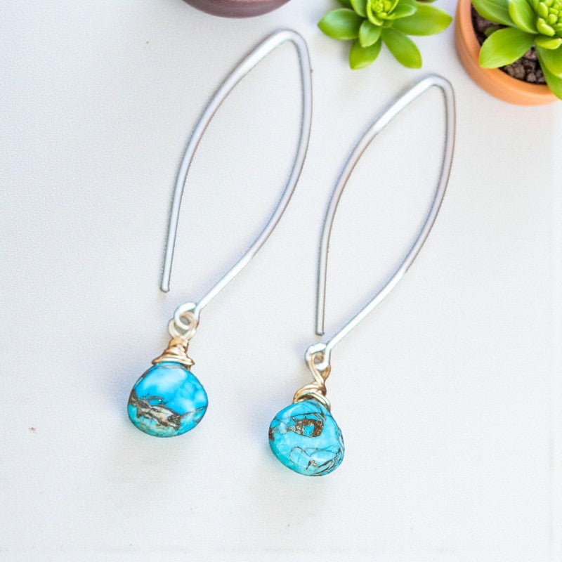 Expect to receive compliments wherever you go! The unique blend of silver and gold in these earrings, along with the captivating copper turquoise, guarantees that you’ll be stopped to ask where you got them. They make a wonderful gift for yourself or a loved one, combining beauty and meaning in a way that is truly special.