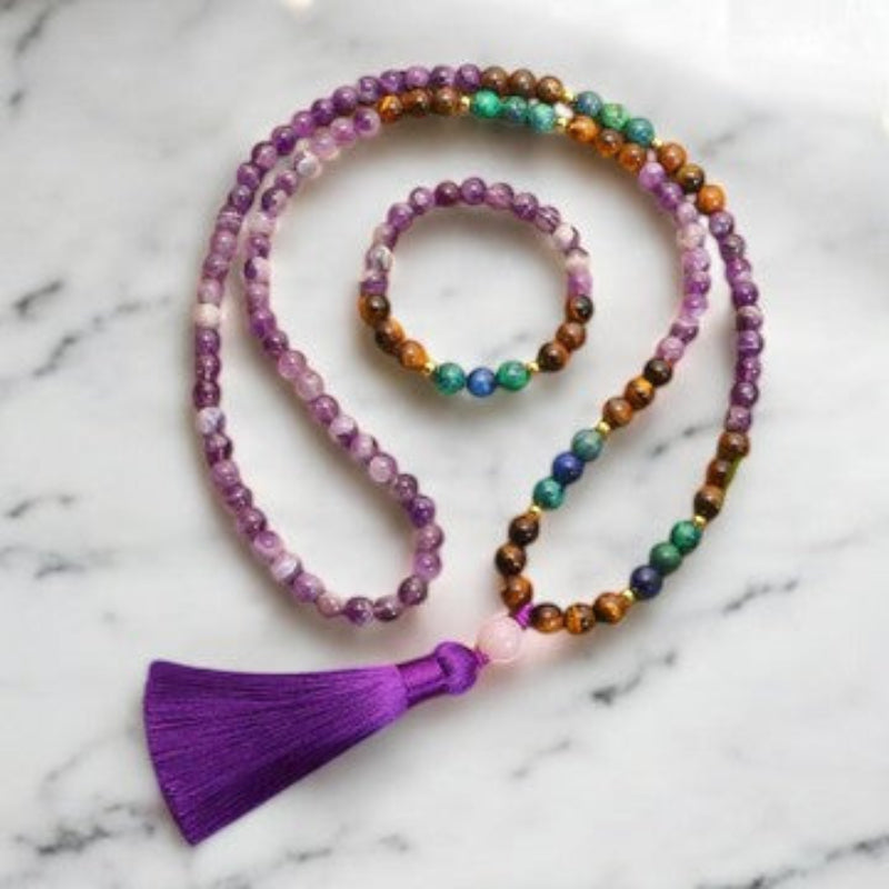 Enlightened Stones Tibetan Amethyst Purification Bracelet Mala Ensemble