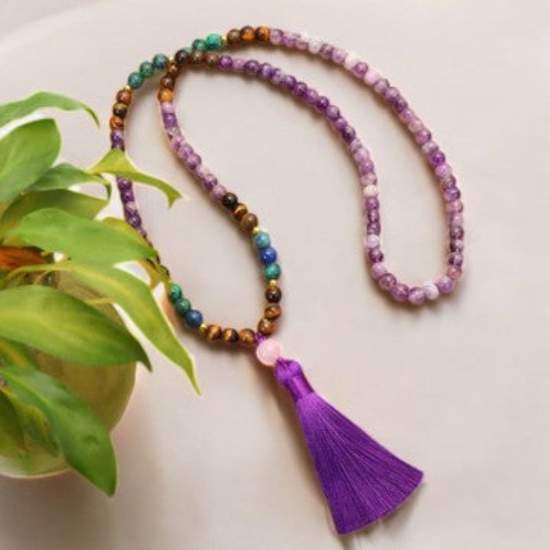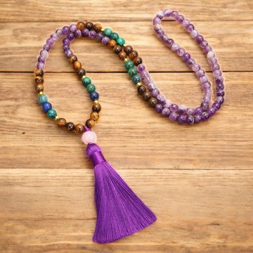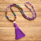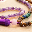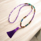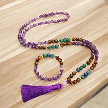 Crafted by skilled artisans, our Serene Spirit Tibetan Amethyst Purification Bracelet Mala Set embodies exceptional quality and profound significance. Each stone, including amethyst, tiger eye, and lazurite, is carefully selected for its unique positive attributes, offering a blend of spiritual and physical well-being. Handcrafted with a commitment to sustainability, this set is a thoughtful gift for those in pursuit of harmony, serenity, and optimism.
