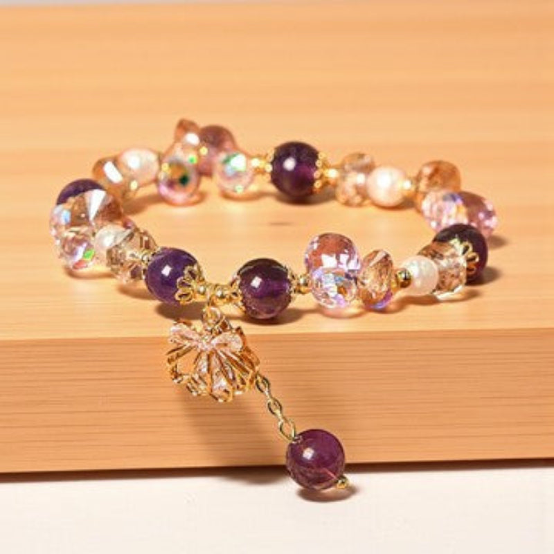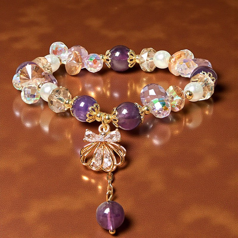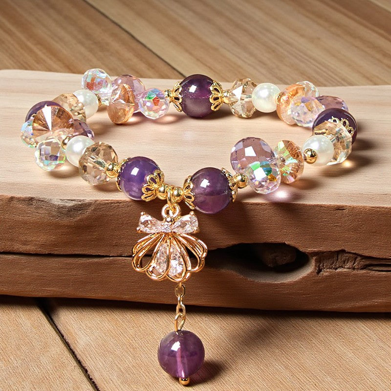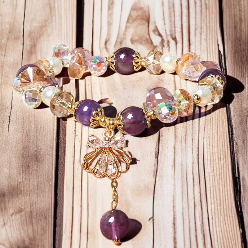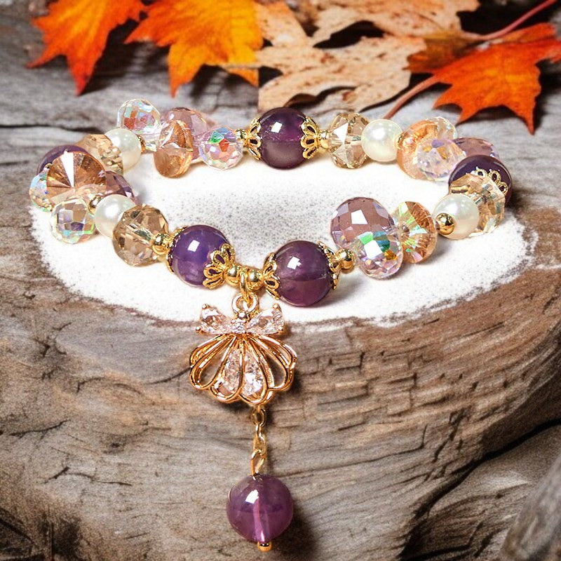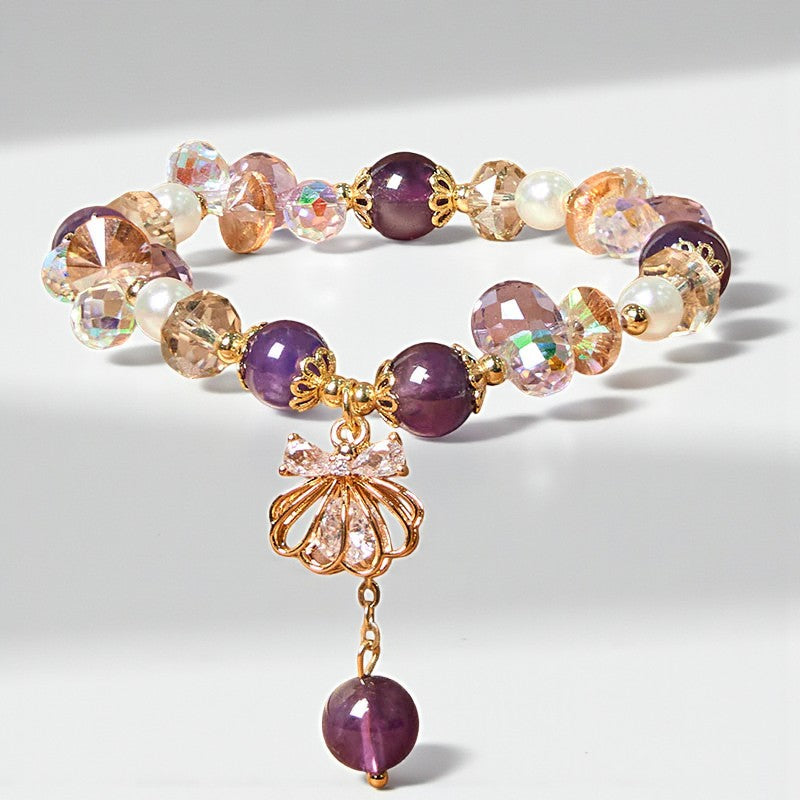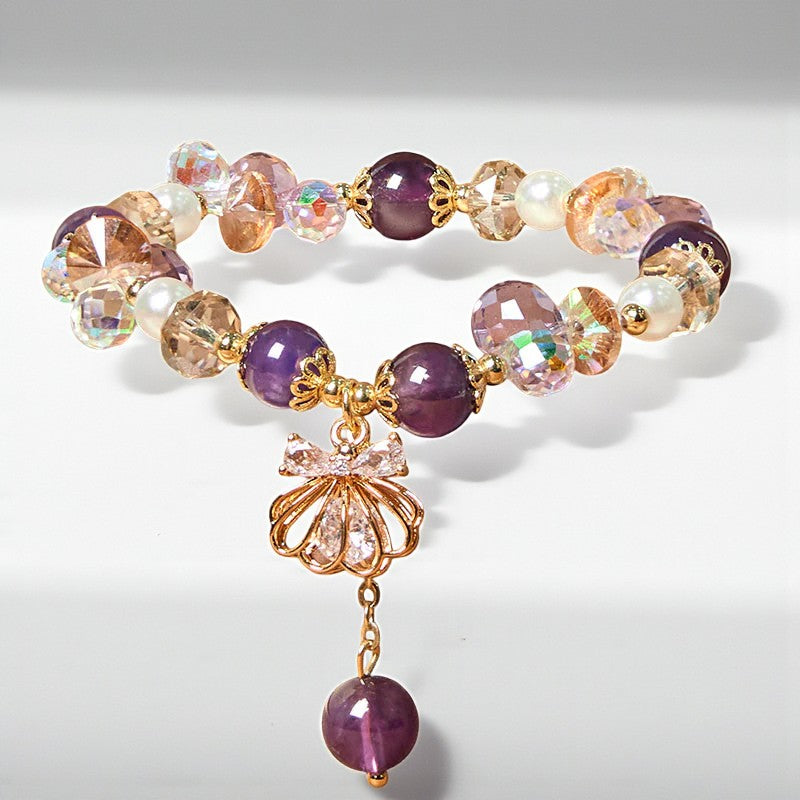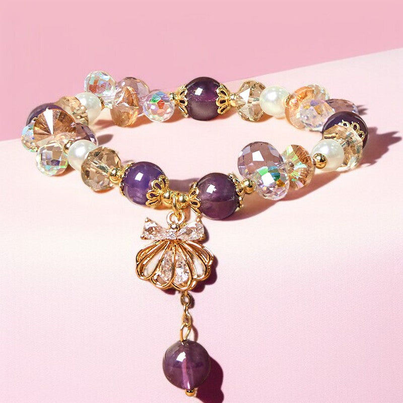 Natural Amethyst Citrine Pearl Shell Gemstone Peace Bracelet