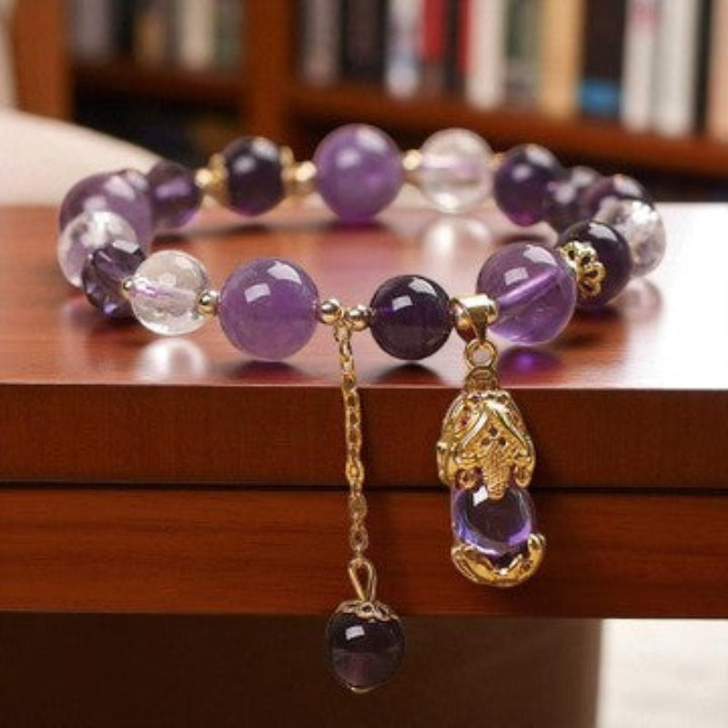 Enlightened Aura: Natural Amethyst PiXiu Harmony Bracelet