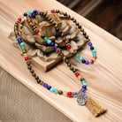 7 Chakra Wrap Around 108 Tibetan Mala Prayer Beads Rosary Jewelry - Featuring a Resilient Elastic Cord, it can be worn as a necklace or stylish wrap bracelet.